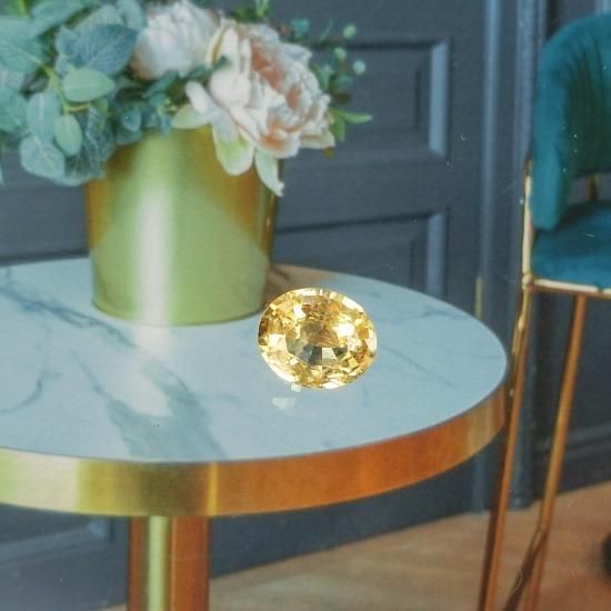 このゴールデンなイエローサファイアは、さらにもう少し一歩上がって、